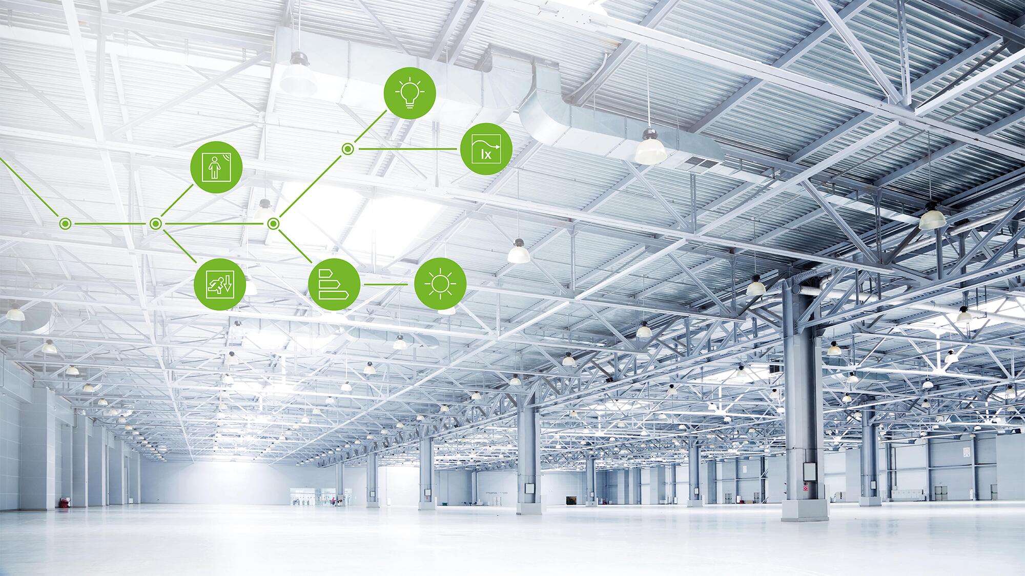 WAGO Lighting Management is a highly sophisticated solution for lighting control in large spaces such as production facilities and warehouses. Using a combination of predefined hardware and user-friendly software, WAGO offers a lighting management system that facilitates the design and commissioning of new lighting systems while providing numerous additional advantages for their operation.